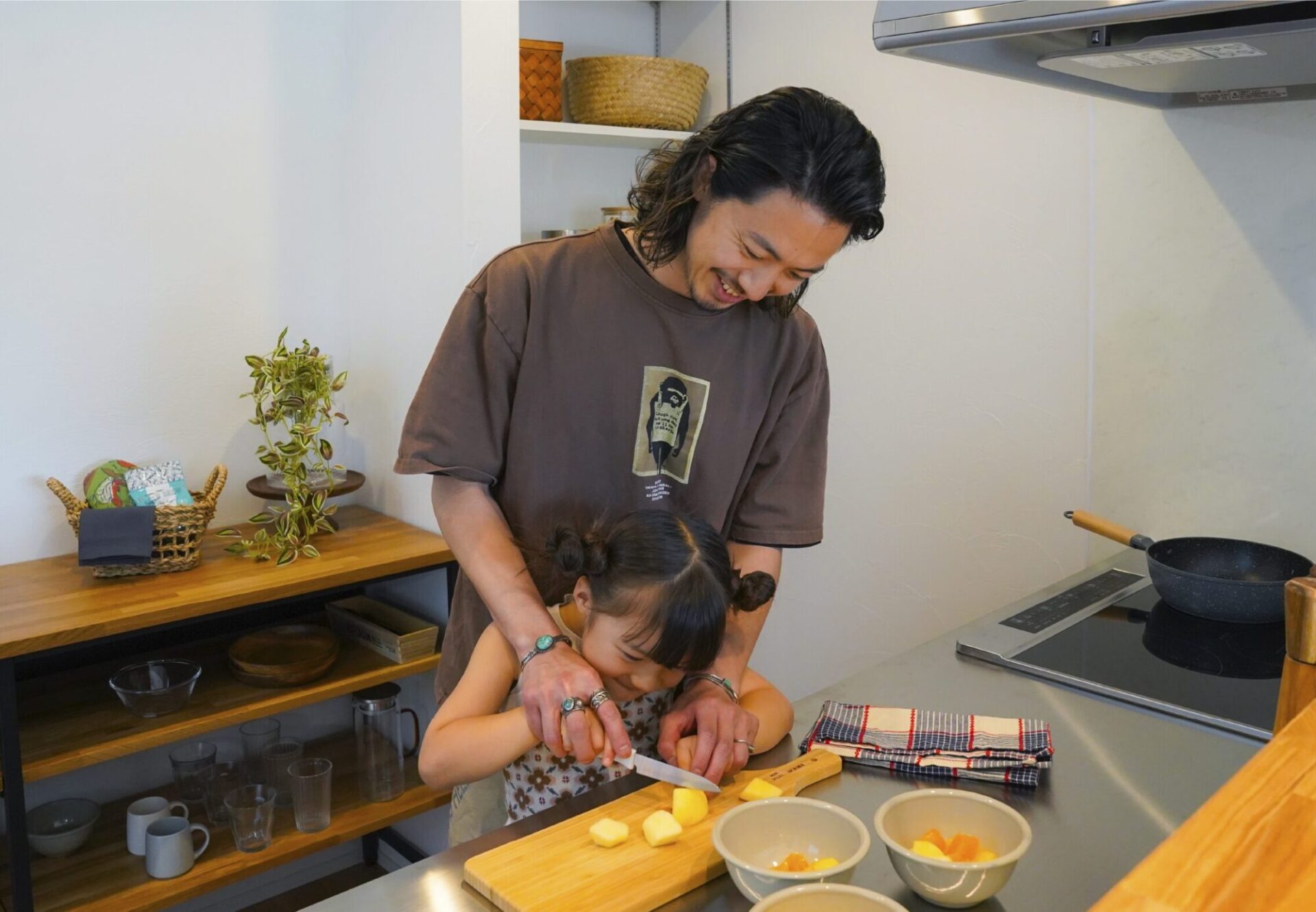 キッチンはリビングとつながっていて、料理中でも家族の気配をいつも感じられるのが本当に心地いいです。以前の住まいよりも光がたっぷり入る設計で、家の中がいつも明るくて気持ちがいいですね。休日には友人家族が遊びに来ることも多く、窮屈さを感じない空間がとても気に入っています。